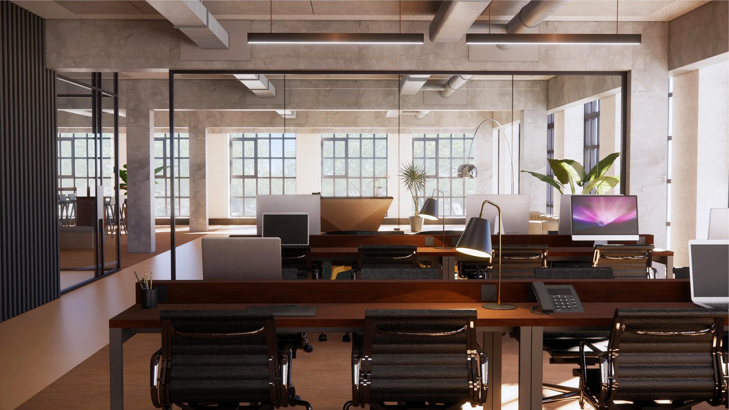 Buitenveldertselaan is a renovation project in Amsterdam in which an old, empty office building is transformed and expanded into a modern office. The upper floor is converted into loft offices with meeting spaces. The visuals show how the offices will look, with a modern feel and an open concept. The materialisation of the construction is preserved. for more information about the project visit Dam & Partners Architects.
